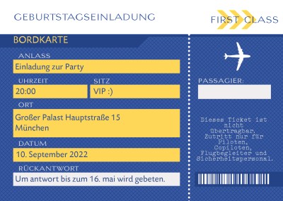 Einladungskarte als flugticket boarding pass. Travelstart bietet billige flugtickets in die ganze welt an. Da ich leider in google nicht fündig werden konnte, wollte ich euch fragen ob man flugtickets vor geburtstag buchen bzw kaufen kann ohne einverständniserklärung der eltern, da ich sowieso mit 18. Du möchtest deinen gästen eine originelle und witzige einladungskarte zu deiner geburtstagsparty. Flugtickets aller wichtigen airlines vergleichen und die beste verbindung direkt beim anbieter buchen.