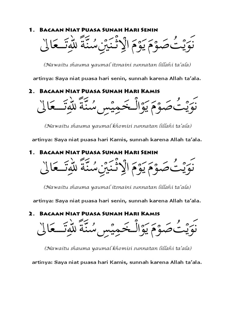 Akan tetapi karena kedua hari tersebut merupakan penyetoran seluruh amal perbuatan. Puasa 6 hari dibulan syawal. Kamis, 8 oktober 2020 03:26. Puasa waktu melakukan niat puasa senin kamis. Saya niat puasa bulan rajab, sunnah karena allah ta'ala. 4.